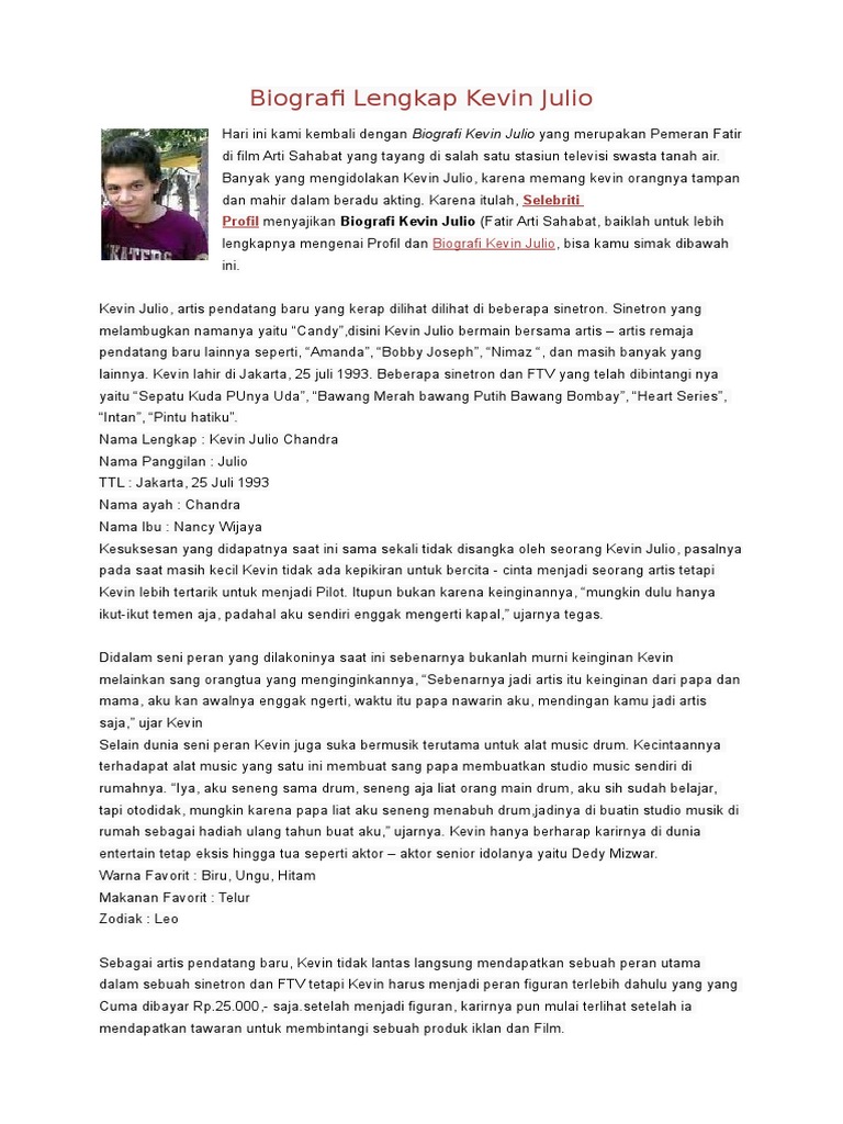 Biodata Foto Kevin Julio Nyata