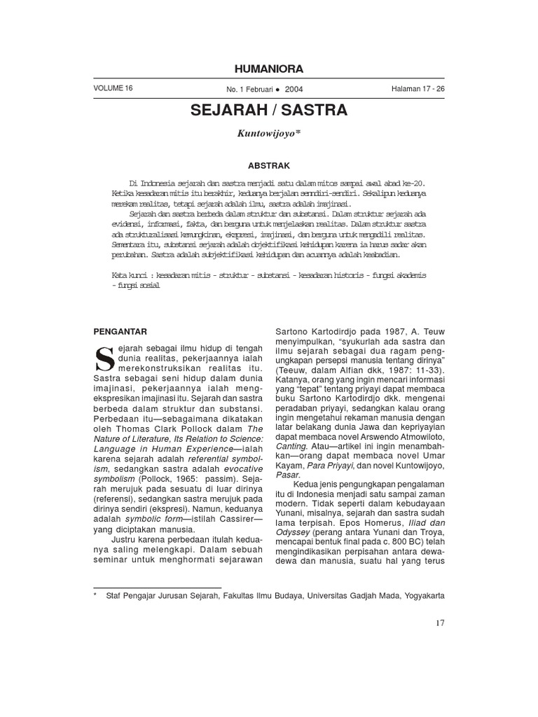 Kuntowijoyo - Sejarah Atau Sastra