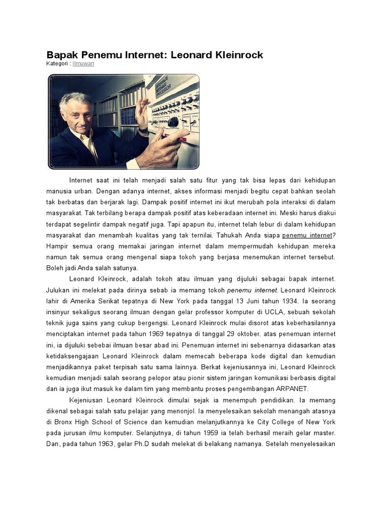 Tokoh Penemu Internet Leonard Kleinroc - Portal Berita Teknologi