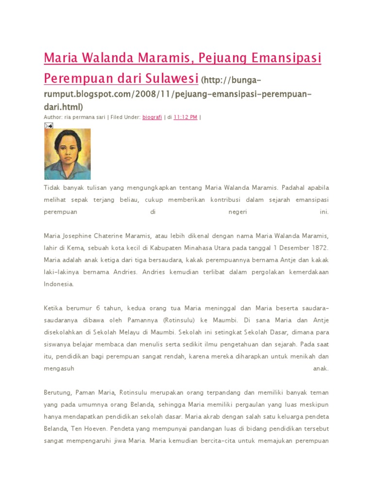 DOC) BIOGRAFI MARIA WALANDA MARAMIS Kelas : BK 3A Siang | Kharisma Handayani - Academia.edu