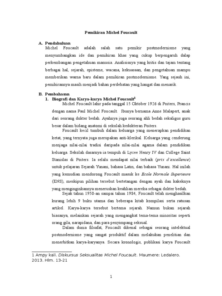 DOC) Pemikiran Michel Foucault | piepit Keydie - Academia.edu
