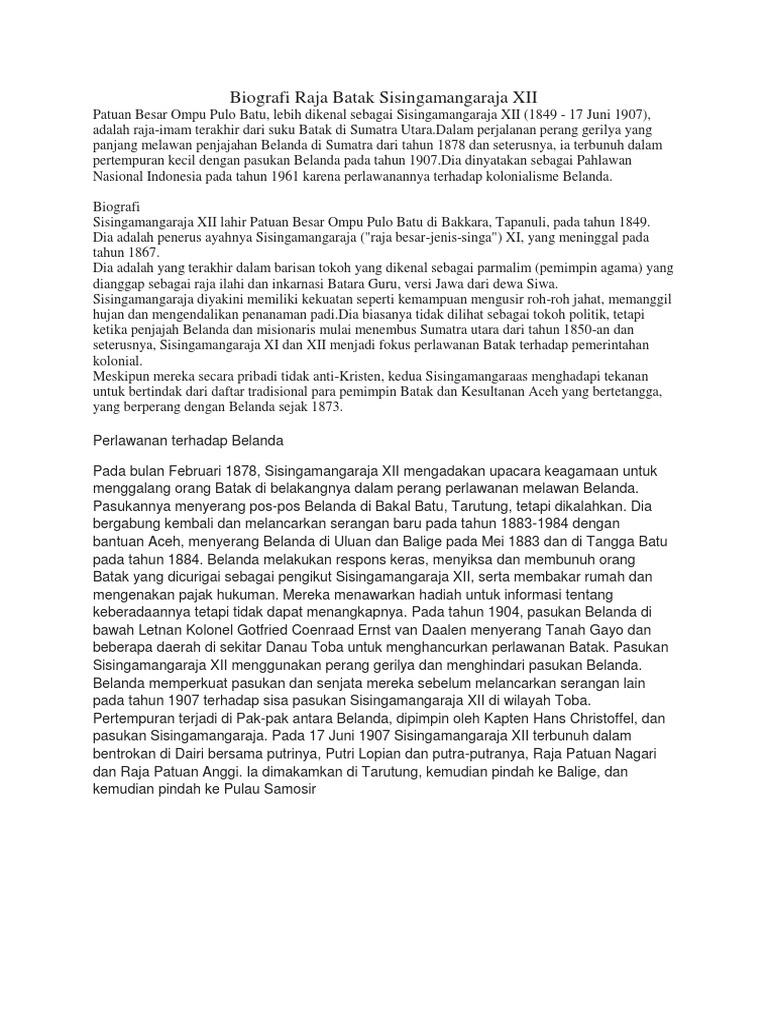 DOC) BIOGRAFI SISINGAMANGARAJA.docx | Syahrul Arul - Academia.edu