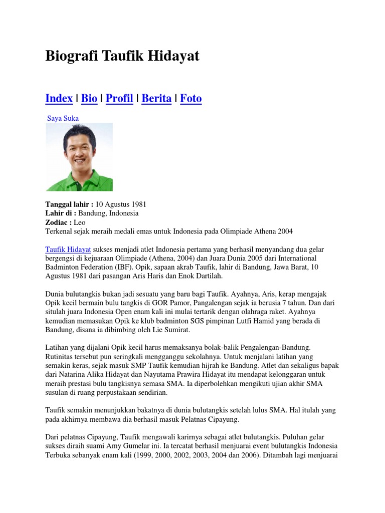 biografi taufik hidayat.. lengkapilah. tolong besok di nilai - Brainly.co.id