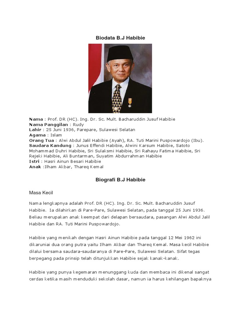 Biografi BJ Habibie dan Kiprah Sang Bapak Teknologi Indonesia - Biografi.co.id | Biografi Tokoh Indonesia dan Dunia