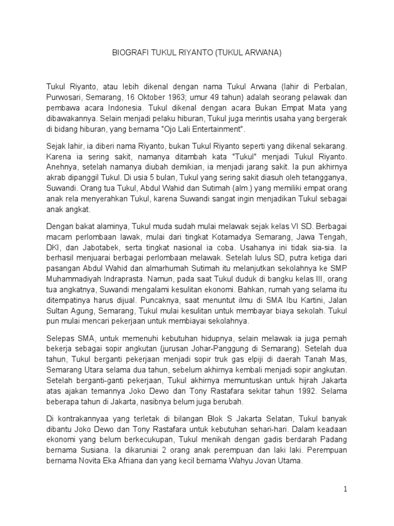TUKUL ARWANA - Biografi di Lapak KAMPUNG BUKU | Bukalapak