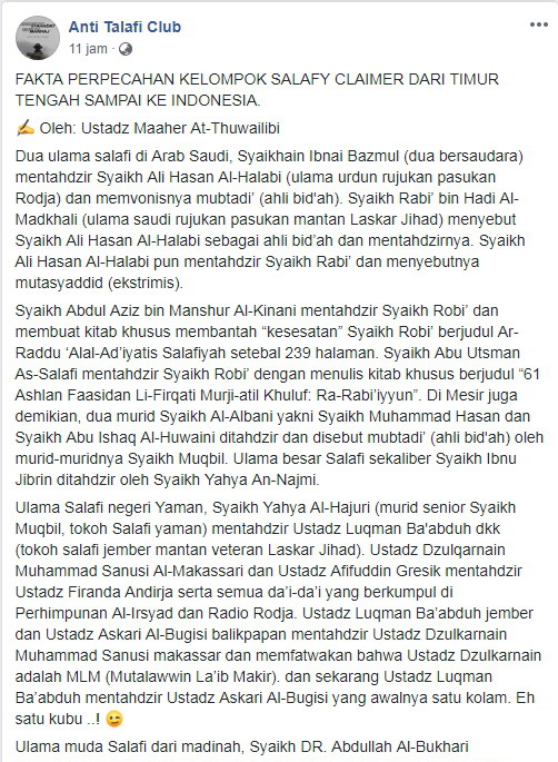 Fakta Perpecahan Kelompok Salafy Claimer - Kajian Medina