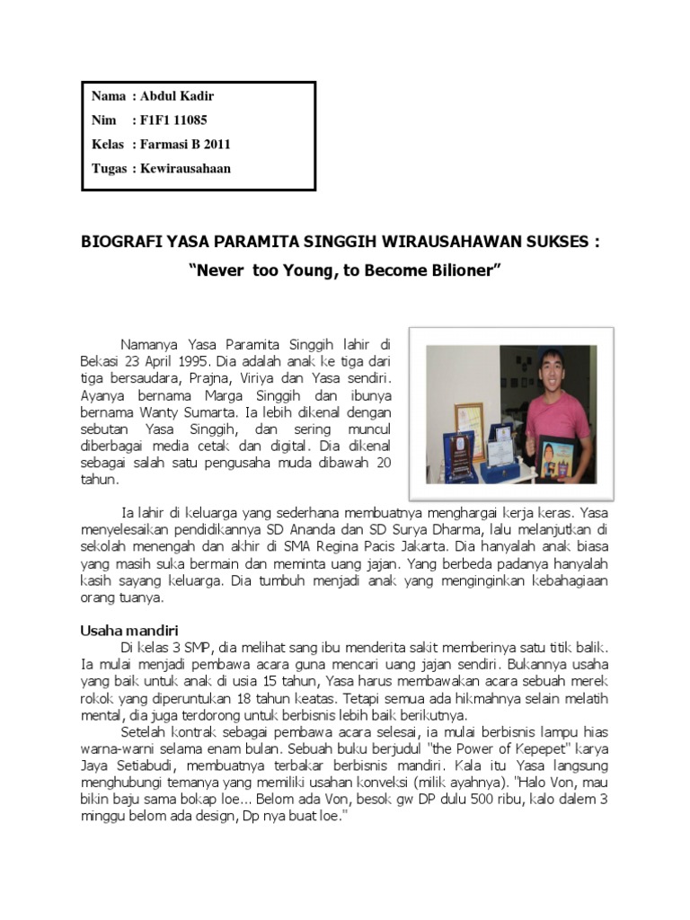 DOC) BIOGRAFI PENGUSAHA SUKSES | Endah Mariadi - Academia.edu