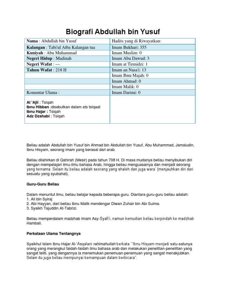 Biografi Abdullah bin Yusuf