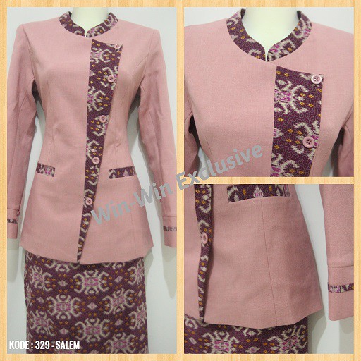 Setelan Blazer Kerja Kantor Wanita Kombinasi Batik Salem Pink …