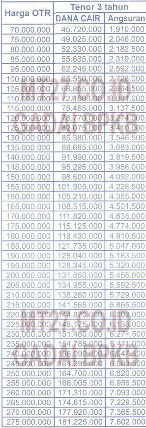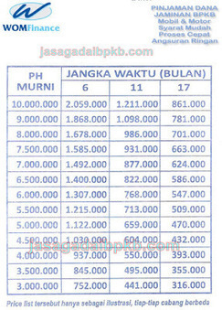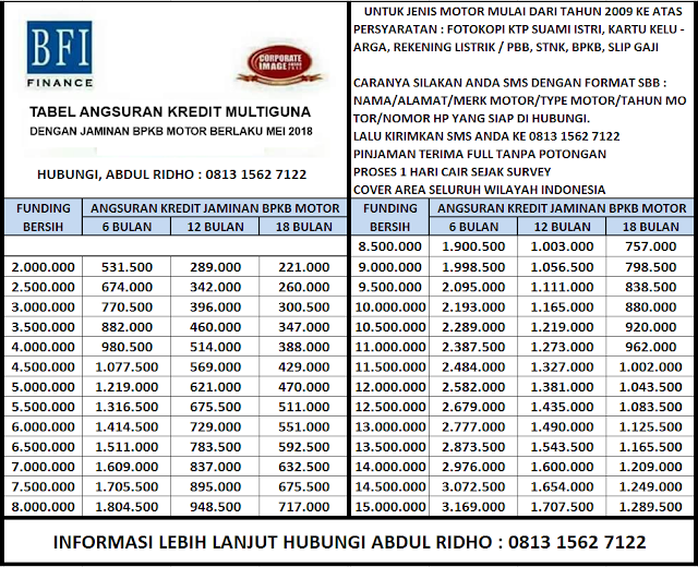 Tabel Cicilan Gadai Bpkb Motor Di Baf