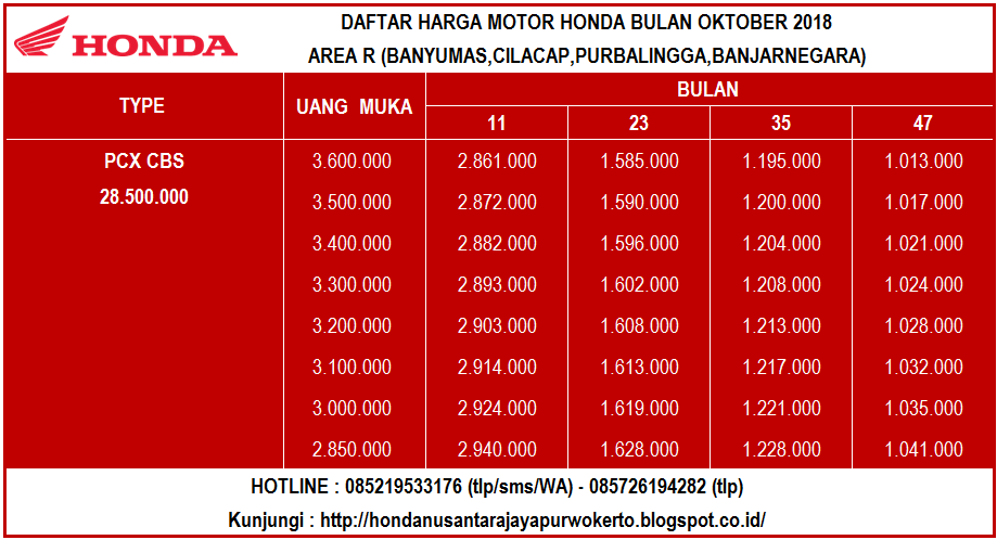 DEALER RESMI HONDA CILACAP: BROSUR HARGA MOTOR HONDA OKTOBER 2018