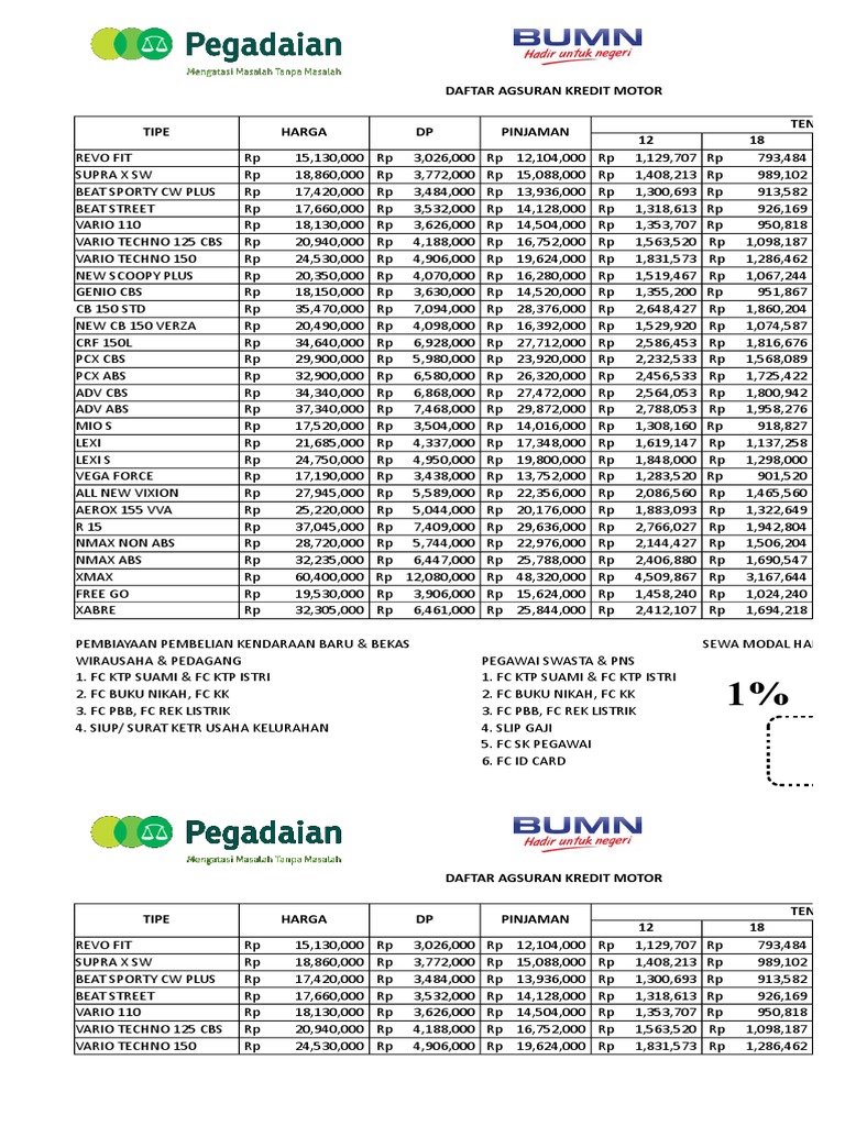 Tabel Angsuran Kredit Motor Di Pegadaian