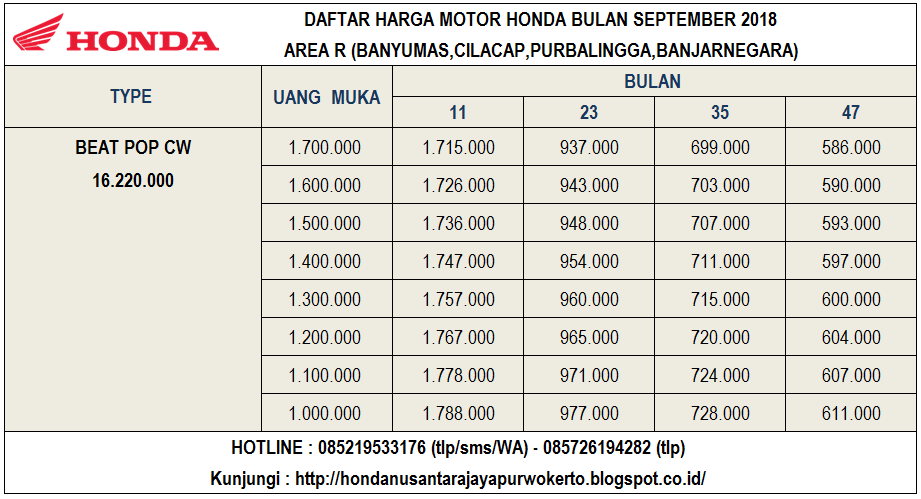 BROSUR HARGA HONDA BANJARNEGARA SEPTEMBER 2018 | DAFTAR HARGA HONDA BANJARNEGARA