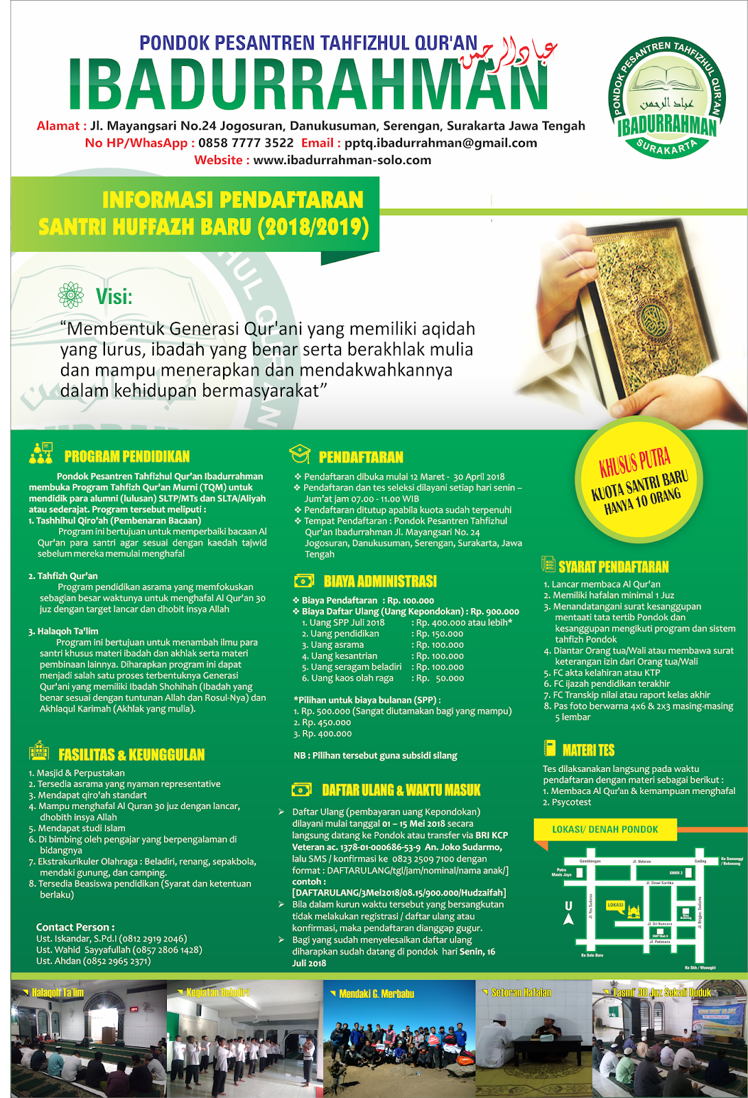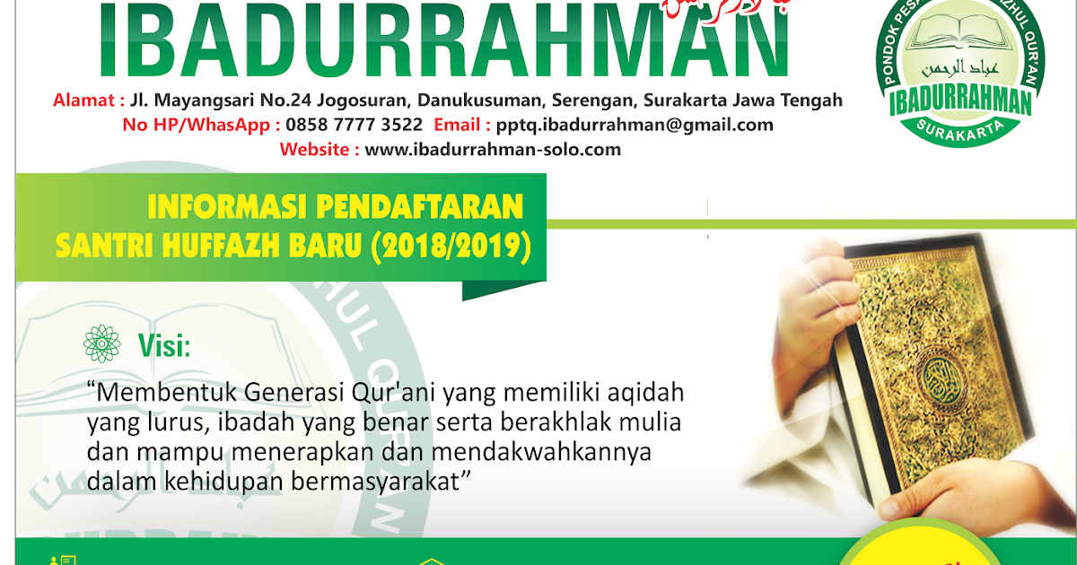 INFORMASI PENDAFTARAN SANTRI HUFFAZH BARU PPTQ IBADURRAHMAN TH 2018-2019 M - PPTQ IBADURRAHMAN