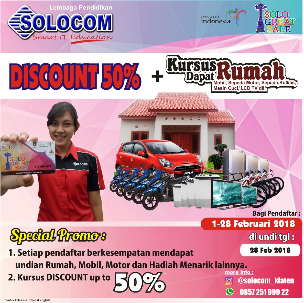 www.kabarklaten.id on Twitter: “Kursus Komputer dan Bhs. Inggris di @solocom_klaten banyak #PromoMenarik. Dapatkan DISCOUNT HARGA 50% dan Kesempatan meraih Hadiah Menarik selama promo bulan Februari. Dibuka kelas pagi, sore dan Privat. More