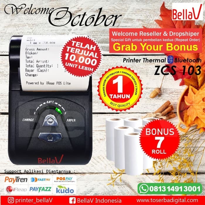 Jual Mini Portable bluetooth Thermal Printer bellaV ZCS 103 - Jakarta Pusat - Wing.Shop | Tokopedia