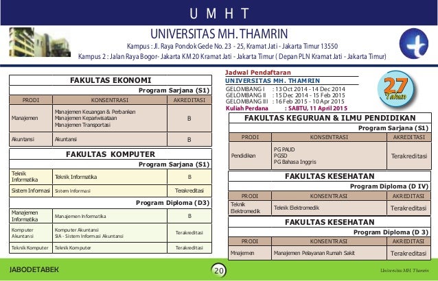 kuliah karyawan: UNIVERSITAS THAMRIN - UNIVERSITAS MH. THAMRIN (FE, FK, FKES & FKIP)