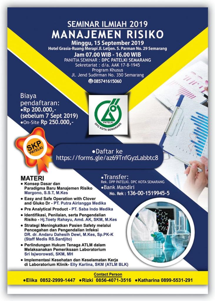 Seminar Ilmiah PATELKI DPC Kota Semarang 2019 | Manajemen Resiko | Info Laboratorium Medik