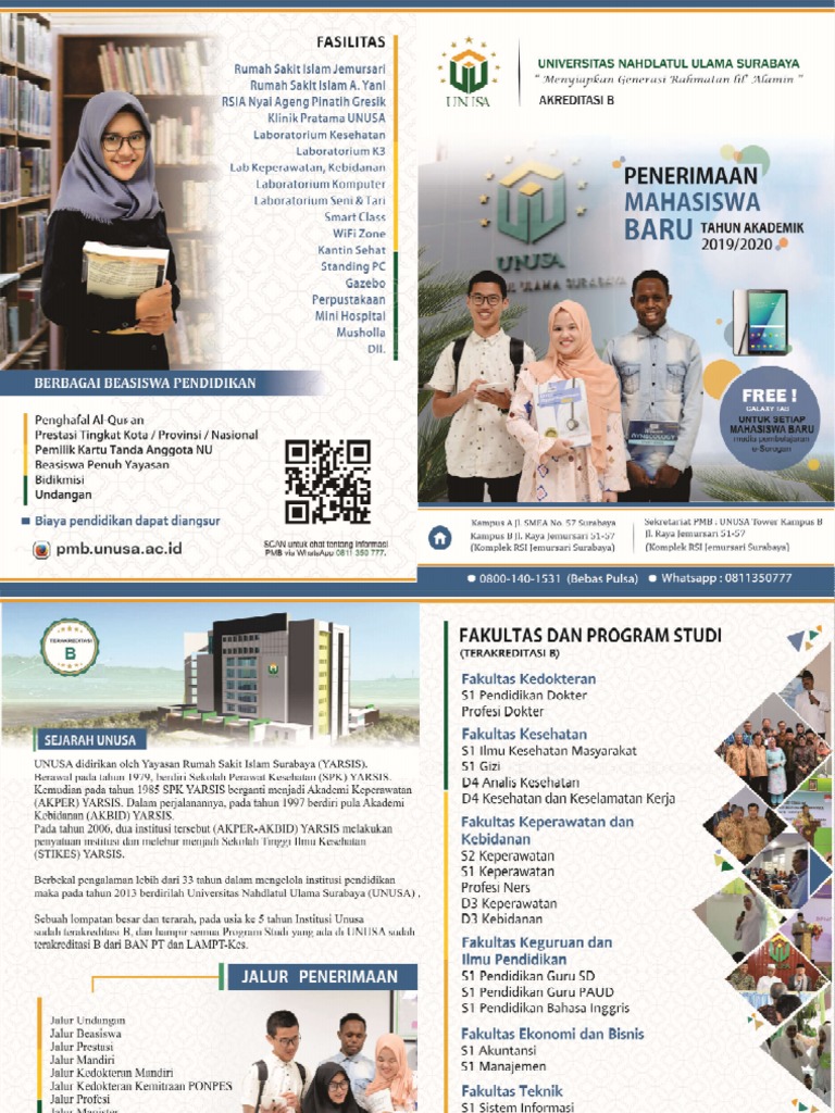 Brosur Unusa Tahun Ajaran 2018 / 2019 - Mahasiswa Unusa
