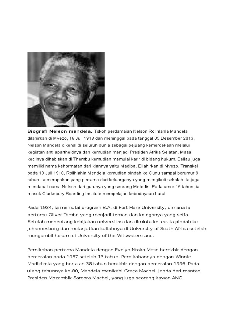 DOC) Biografi Nelson Mandela | Apriliani Nisvi - Academia.edu