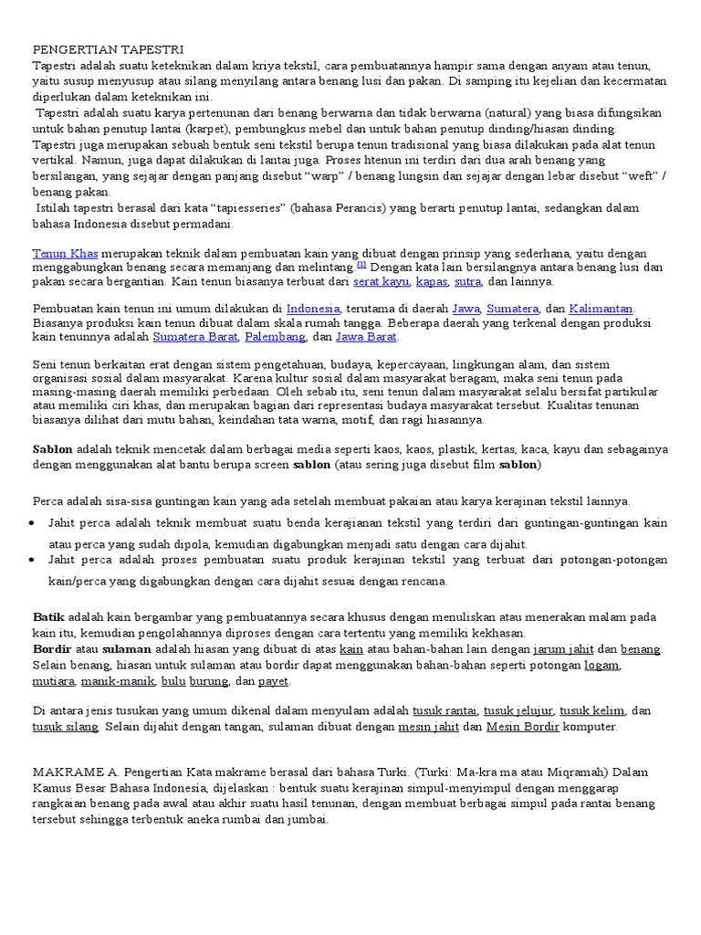 10 Contoh Kerajinan Tesktil - Pengertian, Jenis dan Penjelasan …