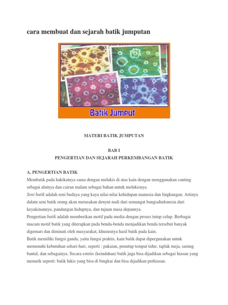Cara Membuat Dan Sejarah Batik Jumputan