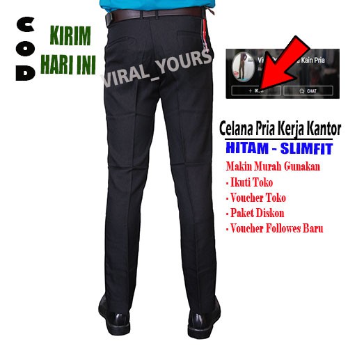 Jual Celana Kain Kantor Pria Slimfit Kerja Formal Bahan Hitam …