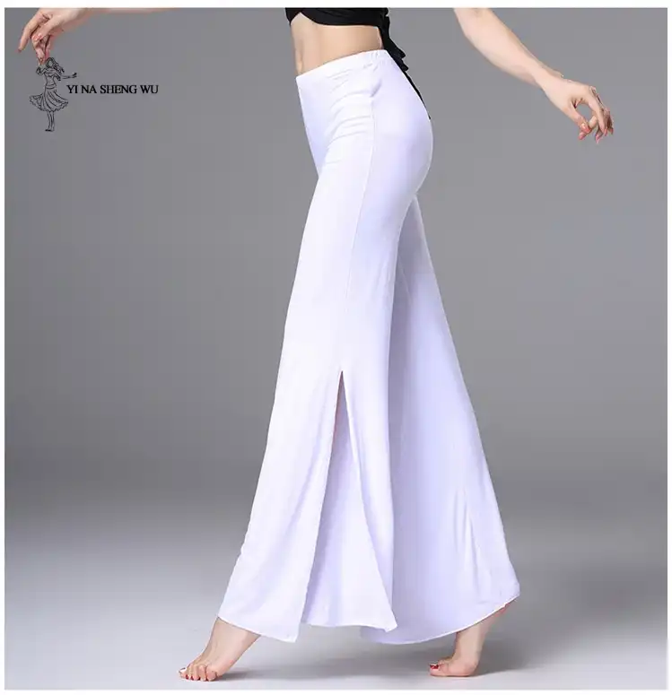 Womem Latihan Tari Pakaian Kostum Tari Perut Kain Modal Dance Celana Wanita Celana Panjang Hitam Putih Split Celana Dancewear|Belly Dancing| - AliExpress