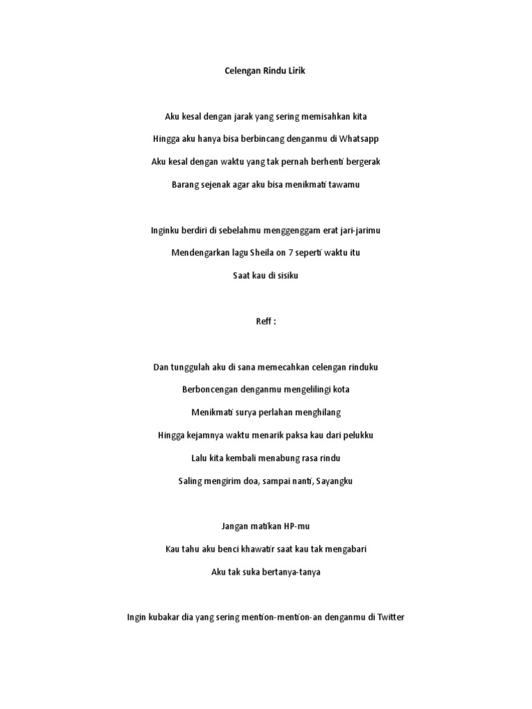Lirik lagu Indonesia - CELENGAN RINDU- fiersa besari - Wattpad