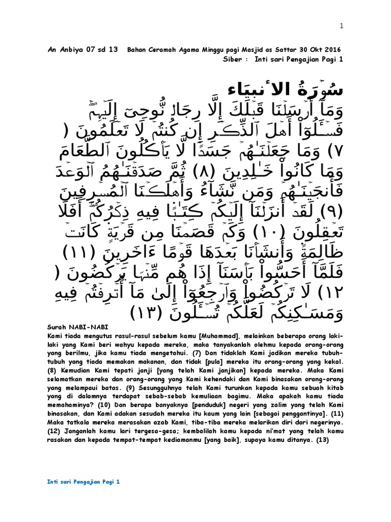 An Anbiya 07 sd 13 Siber: Inti sari Pengajian Pagi 1