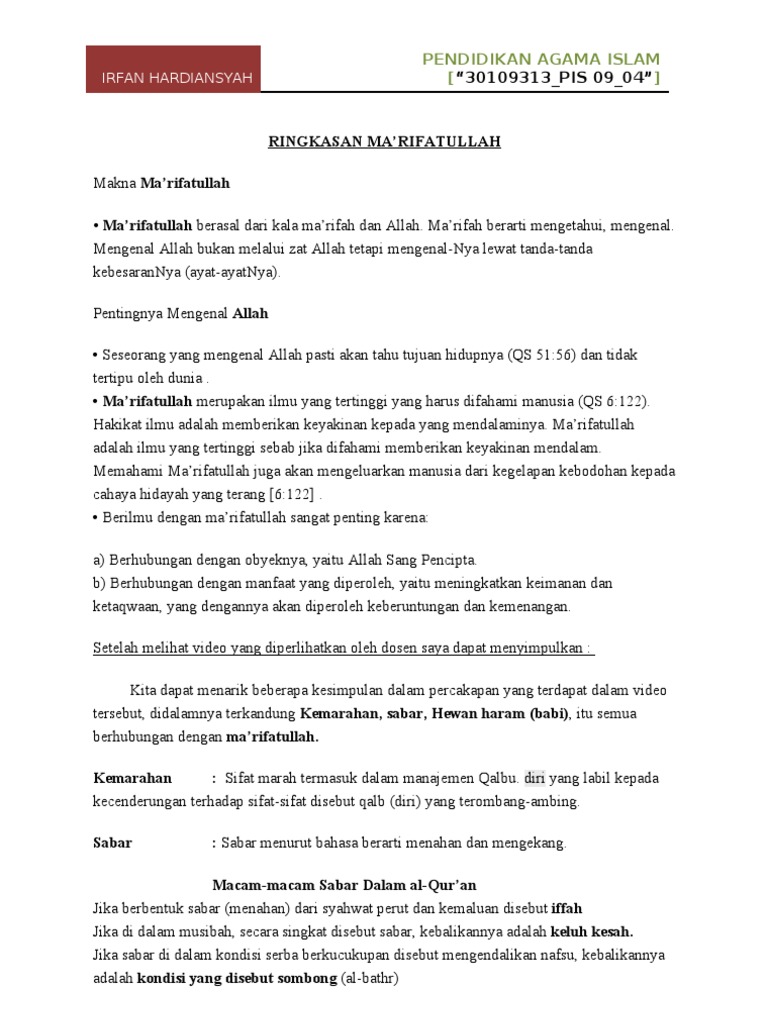 Ringkasan Ma’Rifatullah
