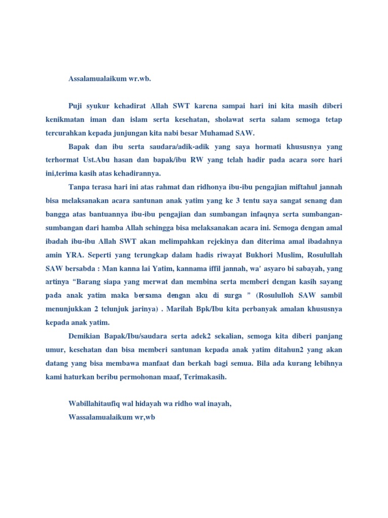 Contoh Naskah Pidato Singkat - Menyantuni Anak Yatim