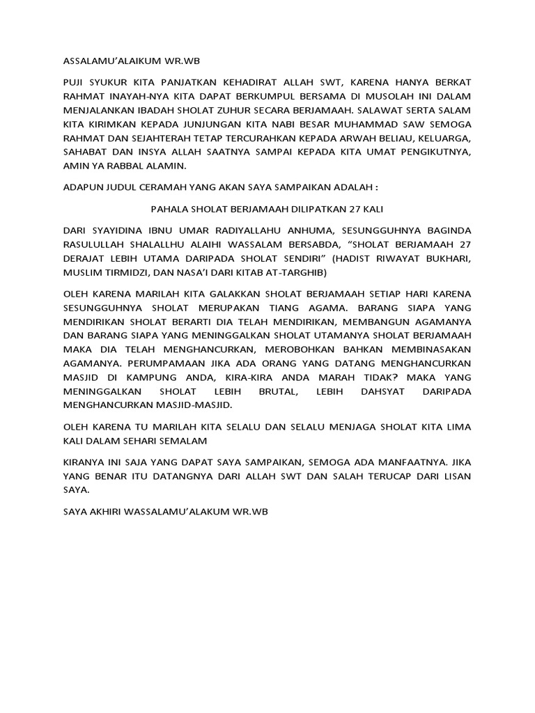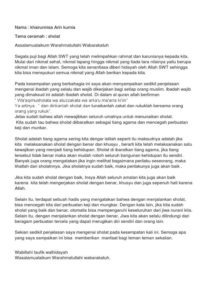 DOC) ceramah tentang sholat | nopitasari matematika - Academia.edu