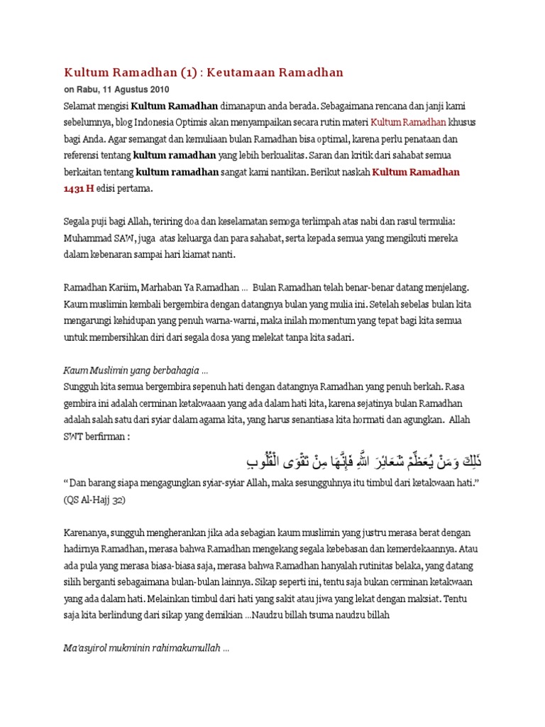 Kultum Ramadhan (1): Keutamaan Ramadhan: on Rabu, 11 Agustus 2010