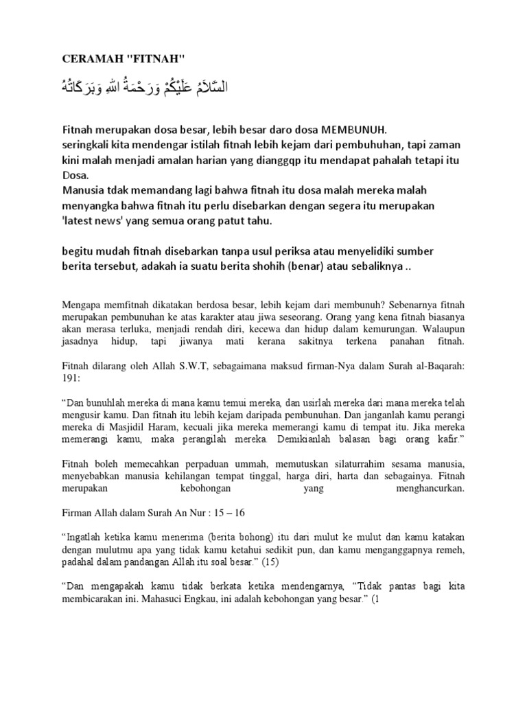 Contoh Teks Ceramah Singkat Tentang Fitnah - Berbagai Teks Penting