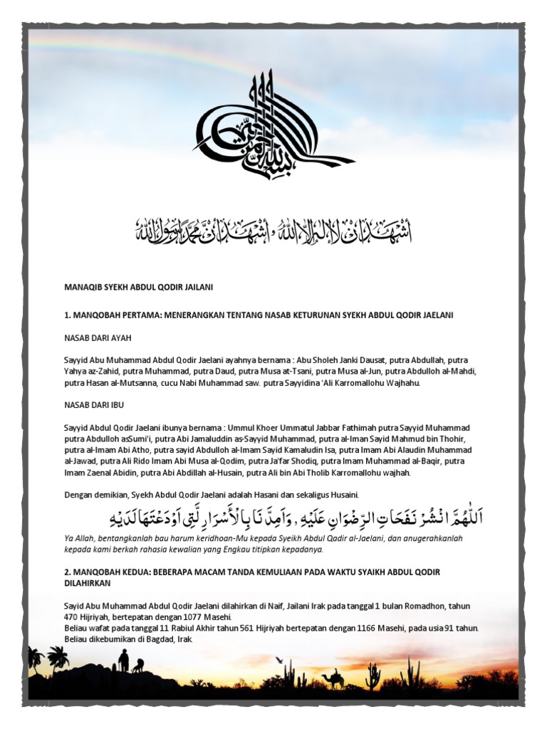 MANQOBAH KESEMBILAN: SYEKH ABDUL QODIR… - Jam’iyyah Manaqib …