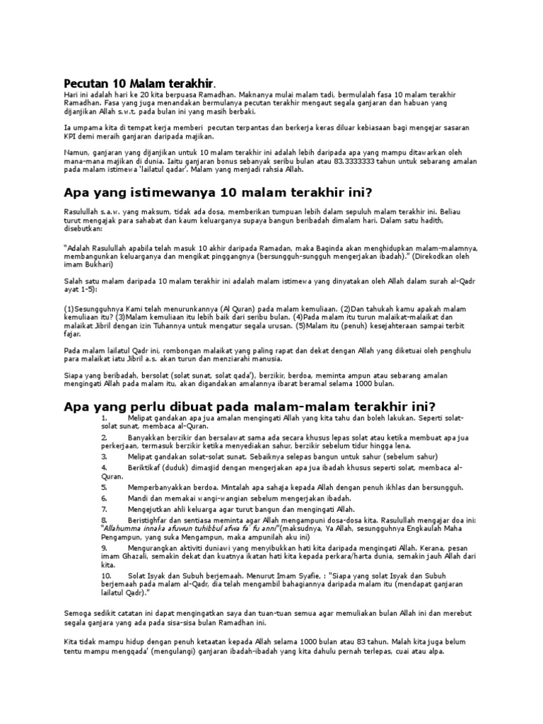 10 RAMADAN TERAKHIR : AMALAN DAN… - Pusat Pungutan Zakat | Facebook