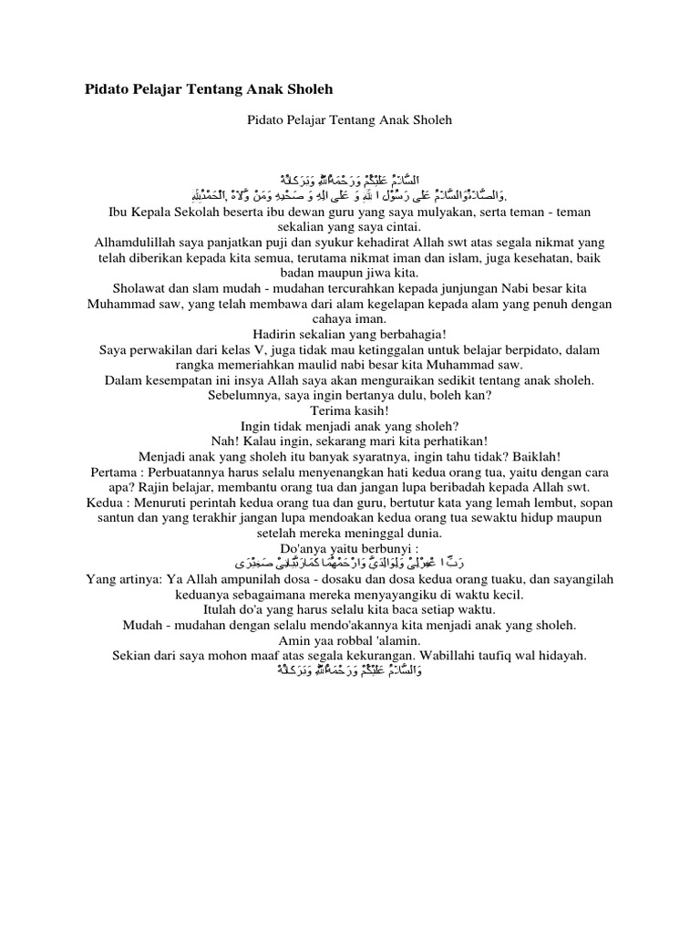 Contoh Pidato Anak Sholeh | Contoh Soal Dan Materi Pelajaran 8