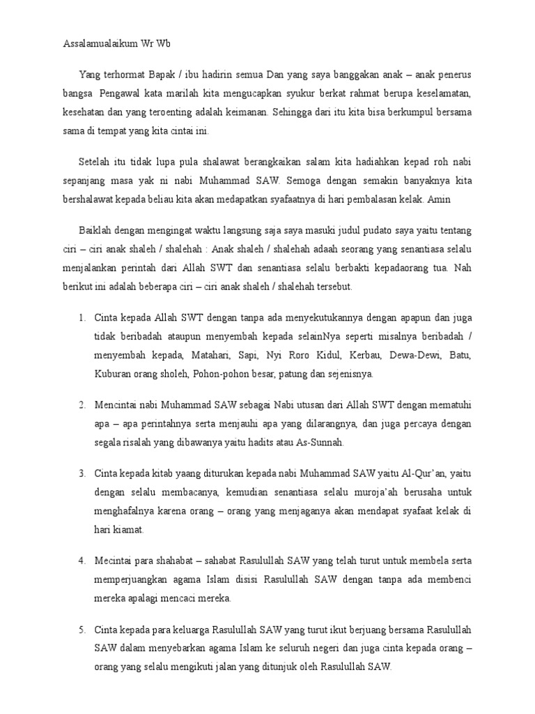 Pidato Pelajar Tentang Anak Sholeh