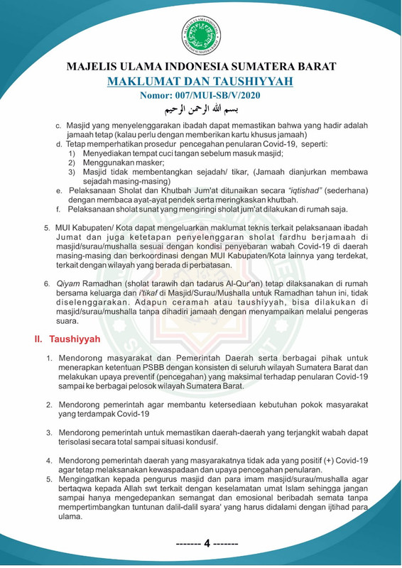 MUI Sumbar Kembali Terbitkan Maklumat dan Tausiah Terkait Ibadah …