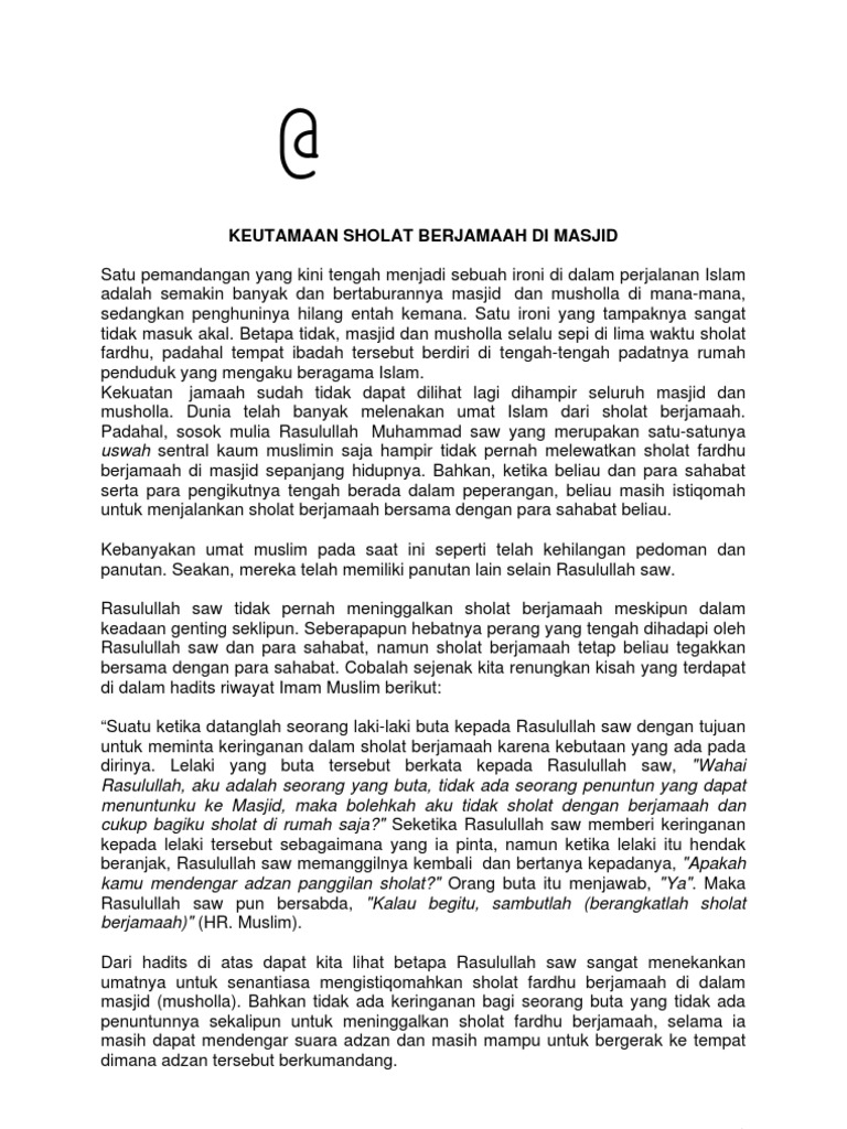 PDF) mendirikan sholat. Allah berfirman: “Dan dirikanlah sholat itu untuk mengingat-Ku. ” QS Thoha: 14 | Wahyu Widiyanto - Academia.edu