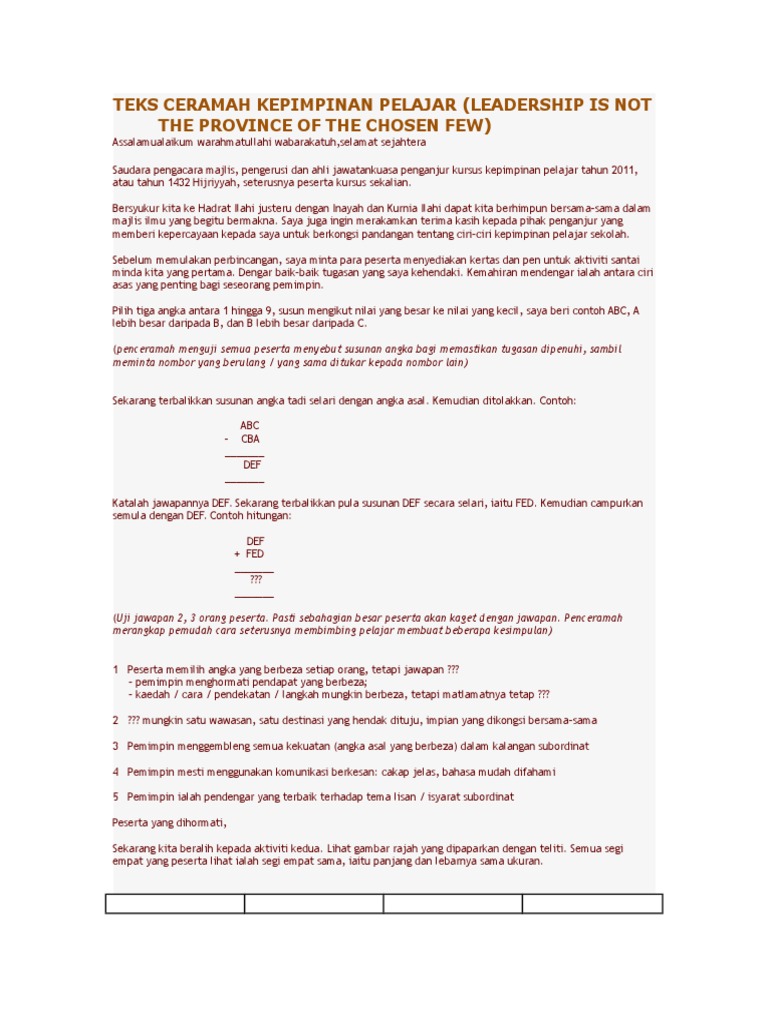 Teks Ceramah Kepimpinan Pelajar (Leadership Is Not The Province …