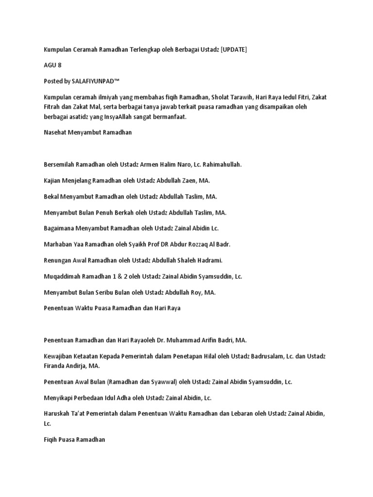 PDF) KUMPULAN CERAMAH RAMADHAN SINGKAT DAN PRAKTIS | M Dahlan - Academia.edu