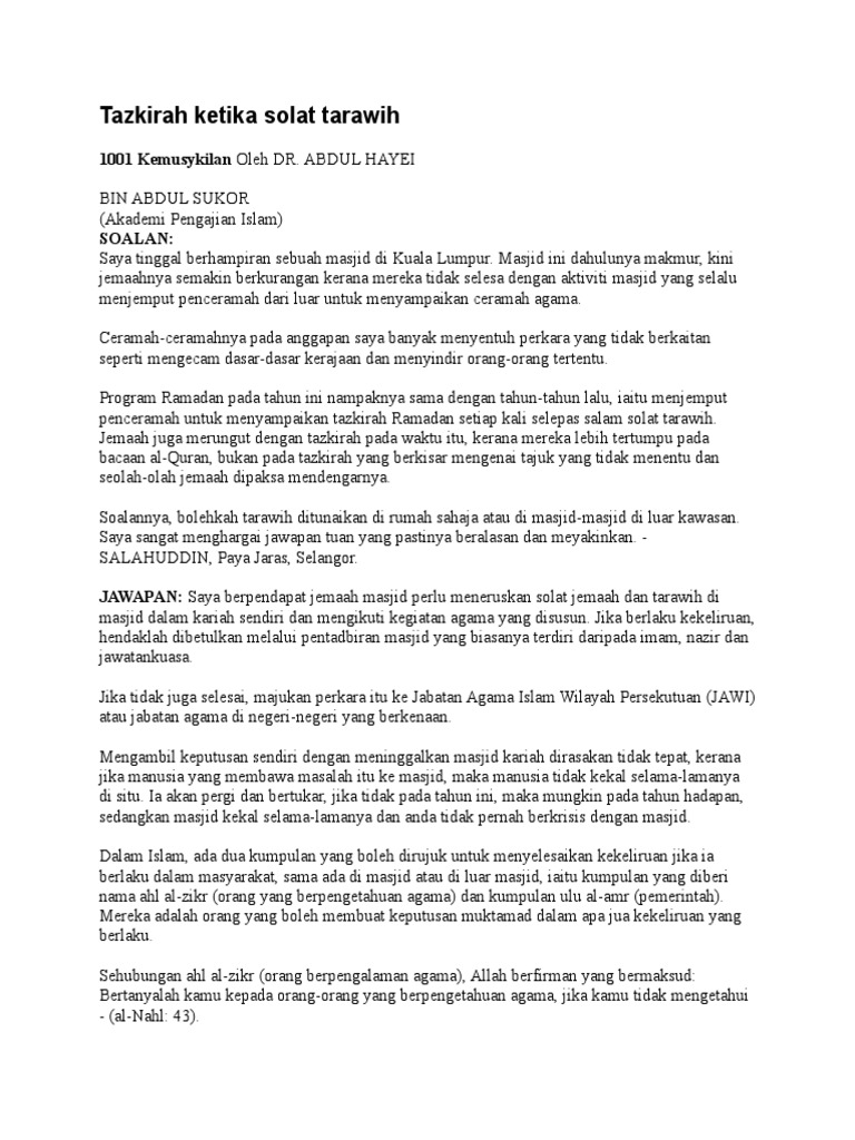Tentang Ceramah Singkat Menjelang Salat Tarawih oleh Ardi - Kompasiana.com