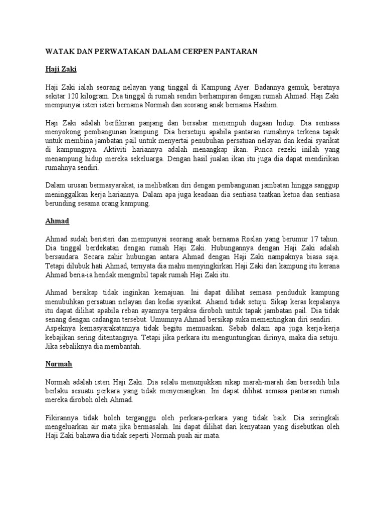 Nota watak dan perwatakan cerpen ‘pantaran’.