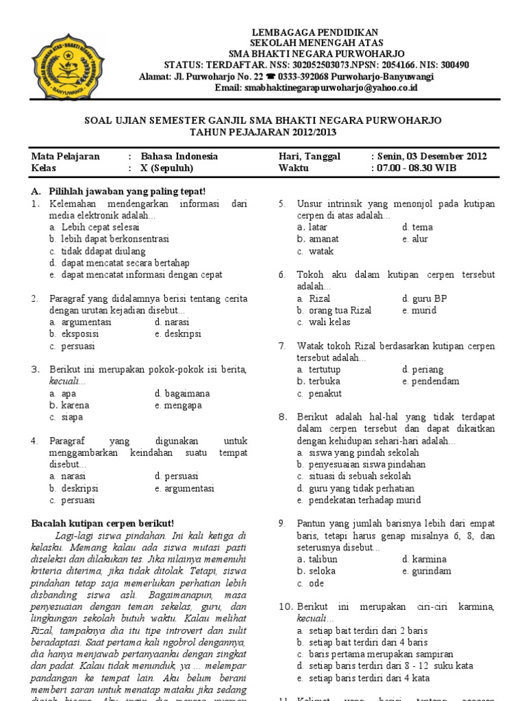 80 Contoh Soal Cerpen Pilihan Ganda beserta Jawabannya