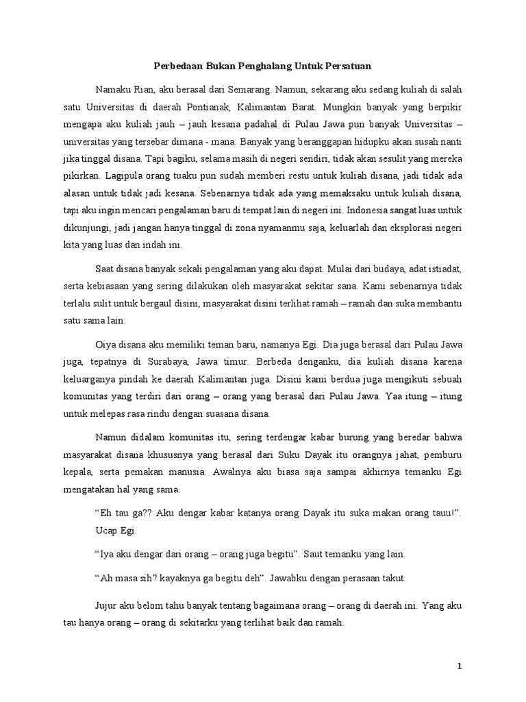 cerpen perbedaan Bukan Penghalang Untuk Persatuan