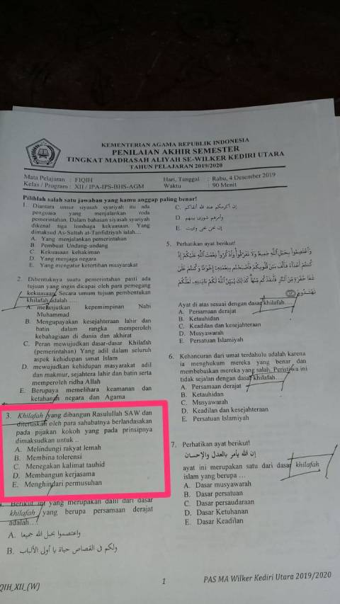 Ramai Pertanyaan ‘Khilafah’ pada Ujian Tingkat Aliyah di Kediri