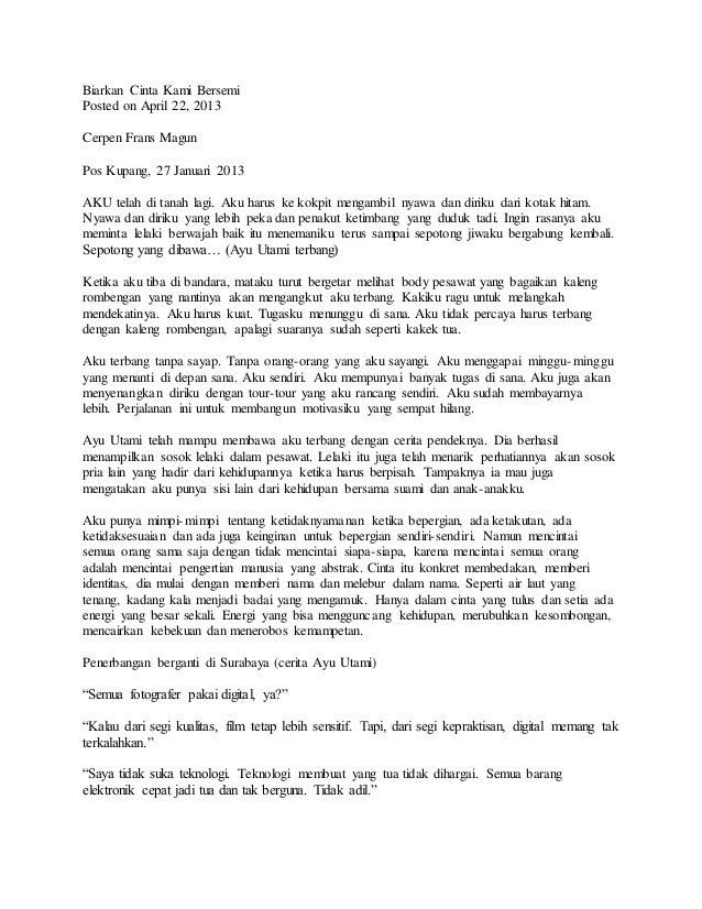 91 ANALISIS KONFLIK SOSIAL DALAM CERPEN “KETIKA CINTA TAK DIRESTUI” KARYA TARJOYO (TINJAUAN SOSIOLOGI SASTRA) 1. PENDAHULUAN