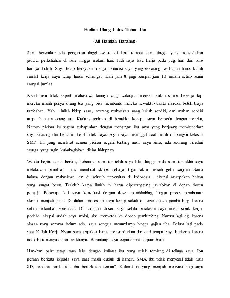 Cerpen Hadiah Untuk Ibu - Sarjana Wanita